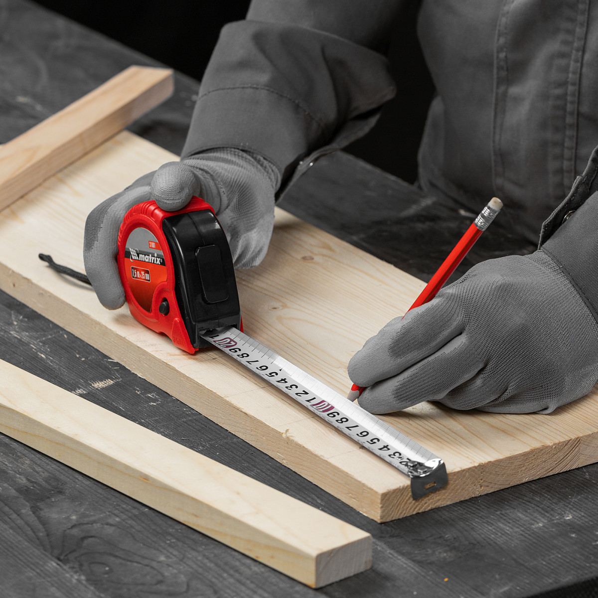 - Защита от падения — шнурок позволяет закрепить рулетку на запястье, клипса на корпусе — на поясном ремне.
