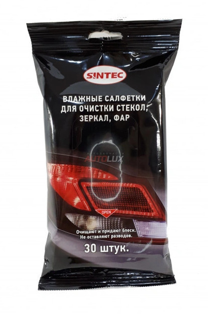 Салфетки влажные для очистки стекол и зеркал SINTEC (30шт)