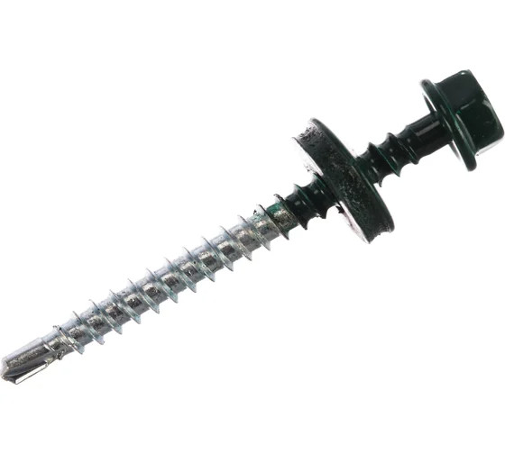 Шестигранная головка с шайбой обеспечивает надежное крепление без проскальзывания при монтаже элементов кровли.