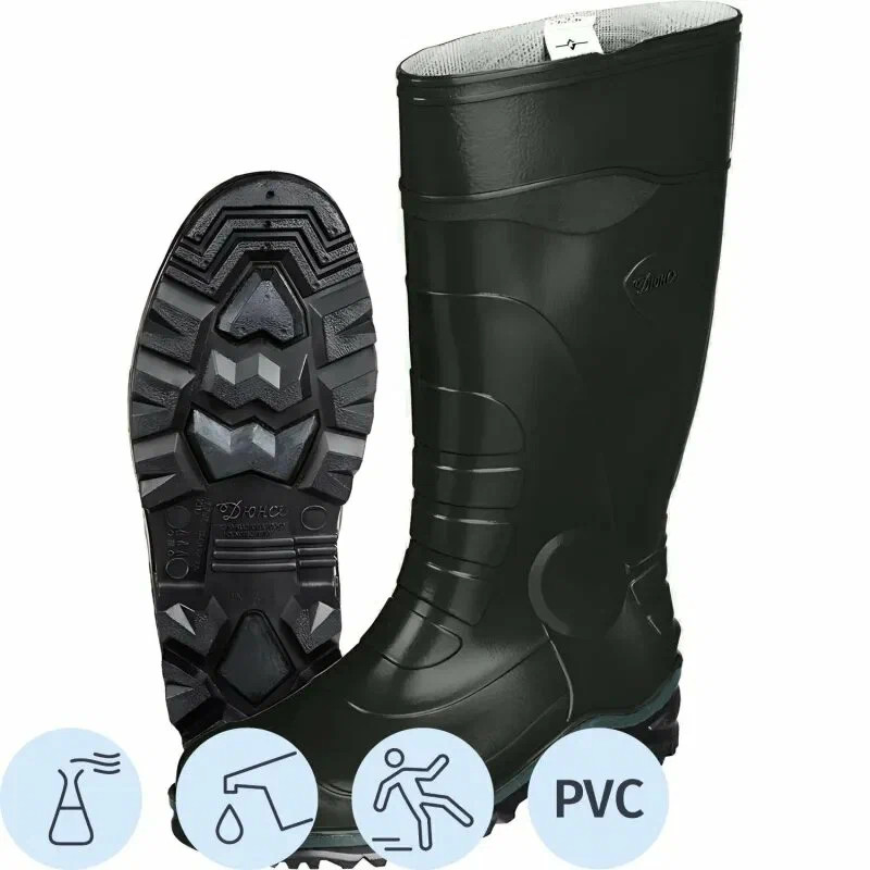 Сапоги мужские из материала ПВХ, изготовленные по технологии трехкомпонентного литья. Модель обладает высокой эластичностью, дополнительными амортизирующими свойствами, защищает от промокания. Идеальная обувь как для повседневной носки, так и для защиты ног от промышленных загрязнений.
