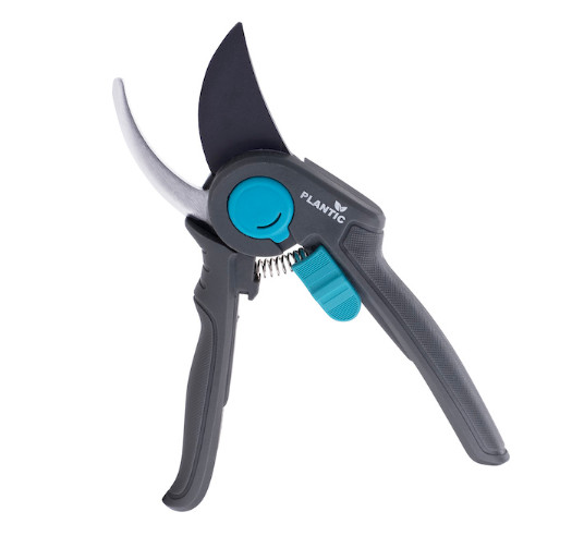 Лезвия секатора легко заблокировать одной рукой, что обеспечивает безопасность в работе и хранении.