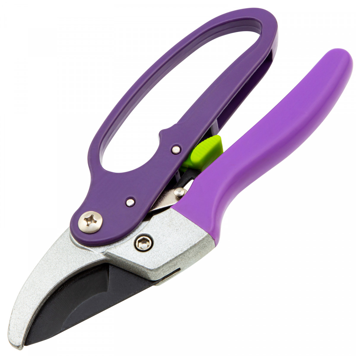 - Безопасность — гарда на нижней рукоятке защищает пальцы от травм, фиксатор удерживает лезвия в сомкнутом положении во время хранения и транспортировки.