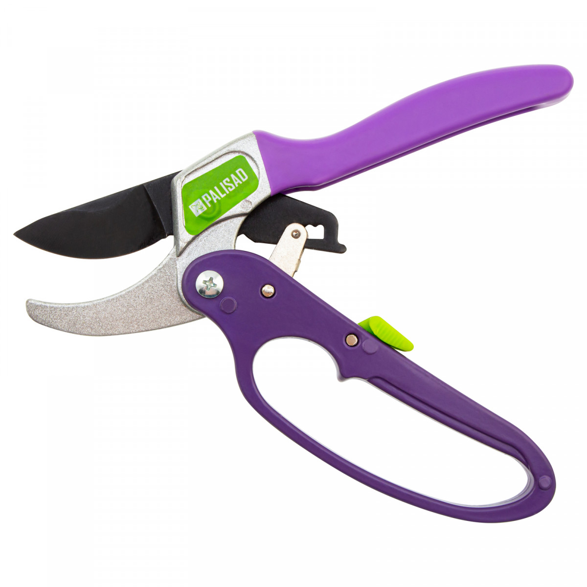 Секатор прямого реза, 200 мм, храповой механизм, металлические обрезиненные рукоятки, Palisad