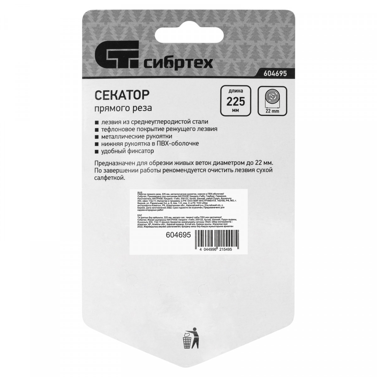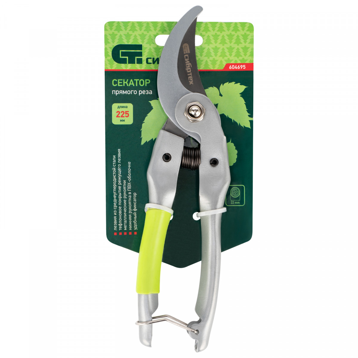 Секатор прямого реза, 225 мм, металлические рукоятки, нижняя в ПВХ-оболочке Сибртех