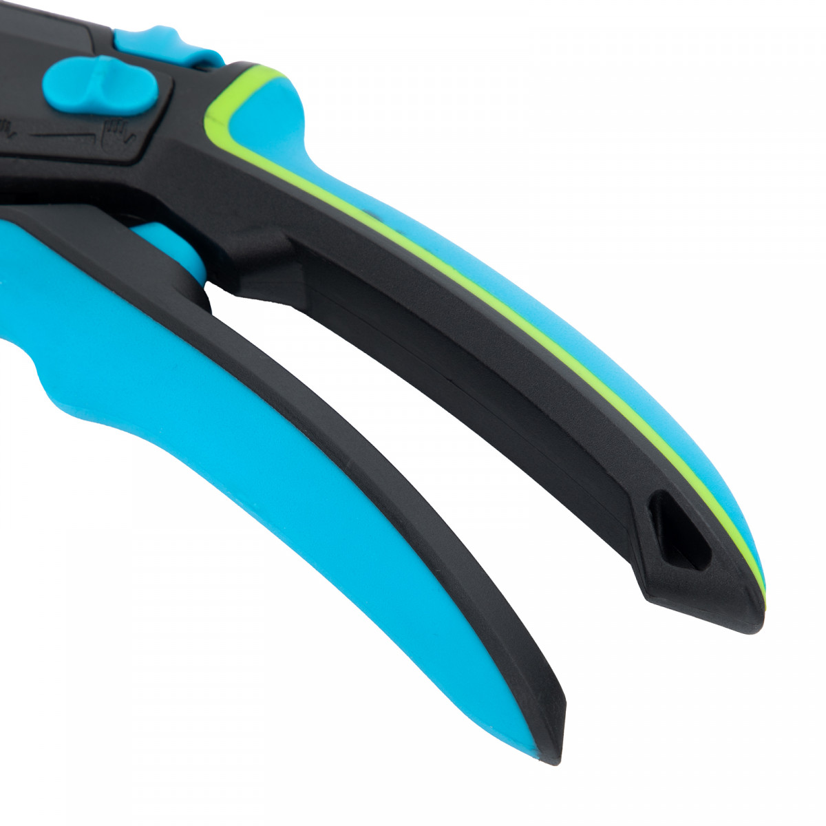 - Безопасность — специальный фиксатор не дает лезвиям самопроизвольно раскрываться во время хранения или транспортировки.