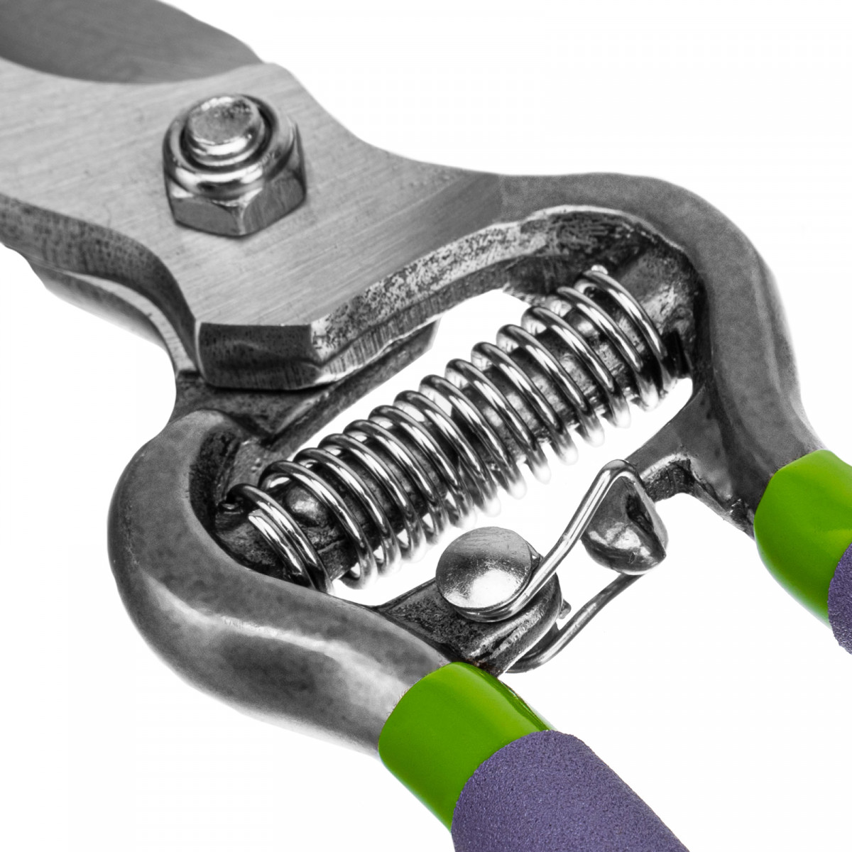 Цельнометаллический секатор прямого реза Palisad 60492 — инструмент для обрезки живых веток диаметром до 25 мм, использующийся для ухода за растительностью на дачном участке. Лезвия, движущиеся в параллельных плоскостях, производят ровный и чистый срез, минимально повреждая растение. Плотность смыкания лезвий можно отрегулировать при помощи винта.
