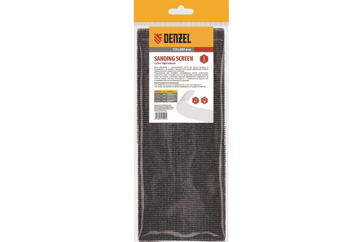 Абразивная сетка Denzel 75183, 115 х 280 мм, с зернистостью P 240, 5 шт. в упаковке, применяется для финишной обработки и придания гладкости зашпаклеванным поверхностям, а также твердой древесине и металлу. Она бережно снимает тонкий слой материала и лакокрасочного покрытия, удаляет ржавчину и заусенцы, сглаживает неровности. Абразивный слой обладает высоким ресурсом, т.к. зерна карбида кремния стачиваются медленно. Сетку устанавливают на ручные шлифовальные приспособления — бруски и сеткодержатели соответствующего типоразмера.