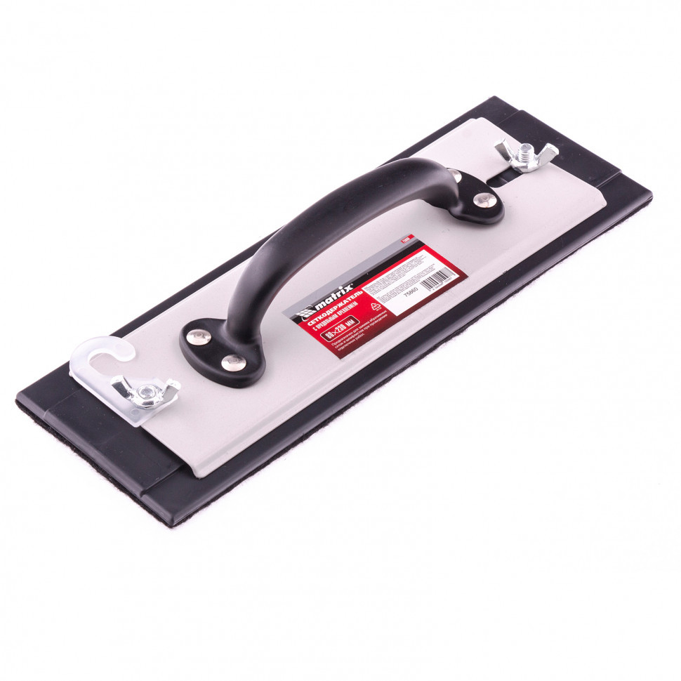 Сеткодержатель Matrix 75860 с подошвой размером 230 х 80 мм, с продольным креплением, используется для подготовки твердых поверхностей к малярно-отделочным и кузовным работам. Надежно фиксирует сетки или шлифлисты любой зернистости, позволяя проводить как грубую, так и тонкую шлифовку древесины, металла, шпатлевки или пластика.