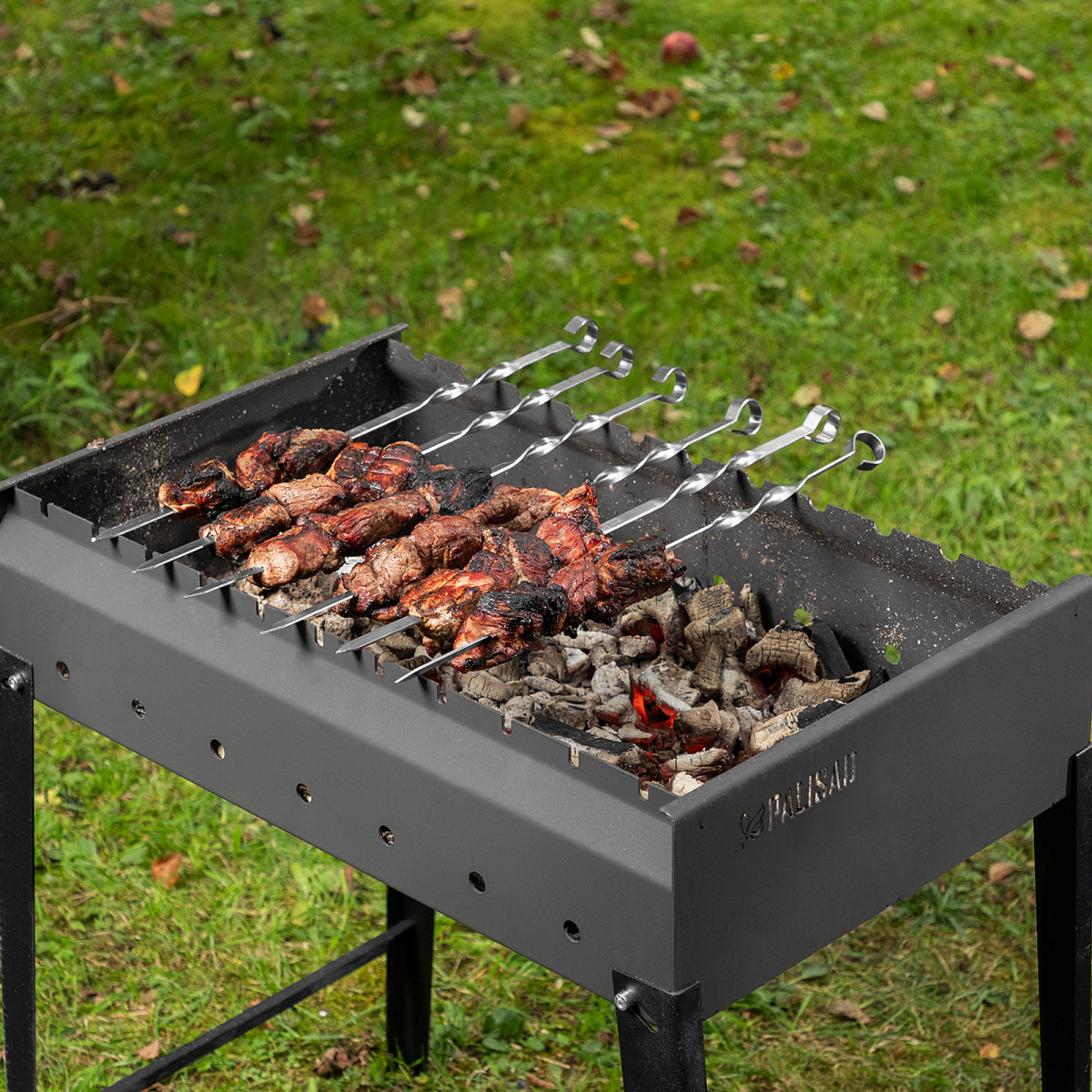 - Продуманная комплектация — 6 шампуров достаточно, чтобы приготовить обед для небольшой компании.