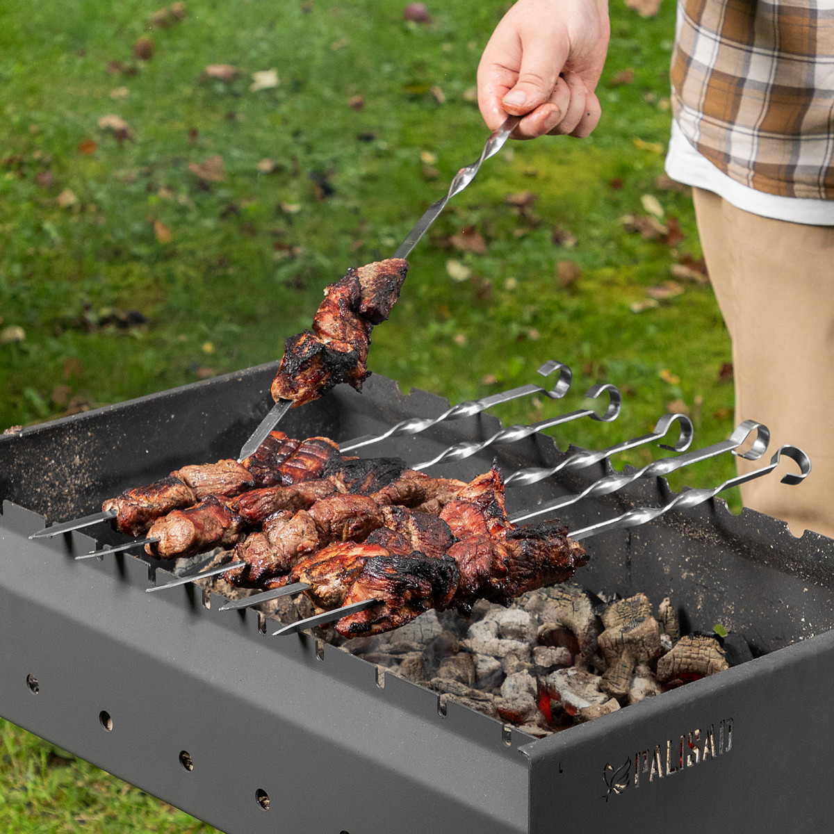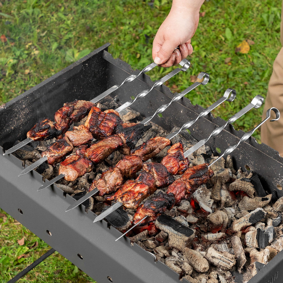 - Комфортное использование — заостренные окончания легко протыкают мясо, а винтовые ручки не прокручиваются на мангале.