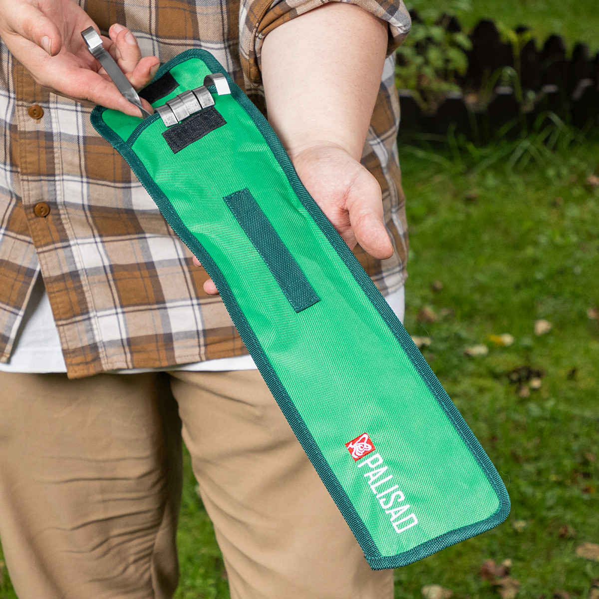 - Удобное хранение и транспортировка — шампуры поставляются в комплекте с чехлом.