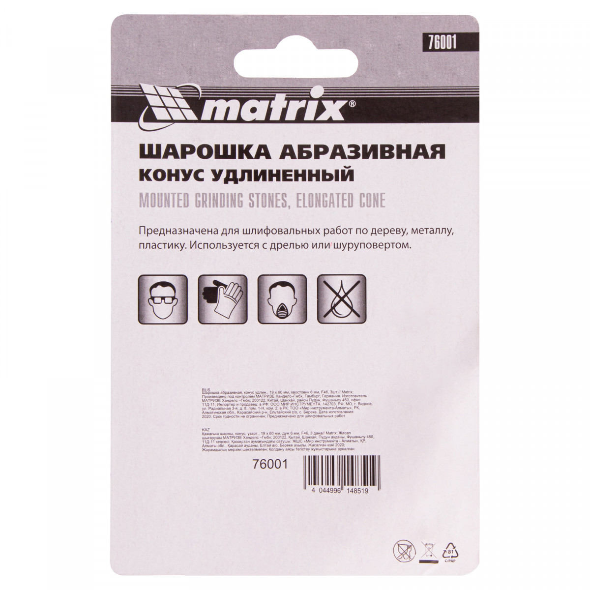 Шарошка абразивная, конус удлиненный, 19 x 60 x 6 мм, F46, 3 шт Matrix
