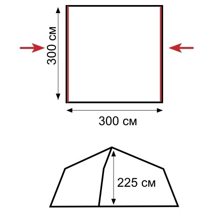 По нижней кромке тента пришита юбка. Она равномерно растягивает тент, не дает дождю затекать под дно и защищает от сквозняков.