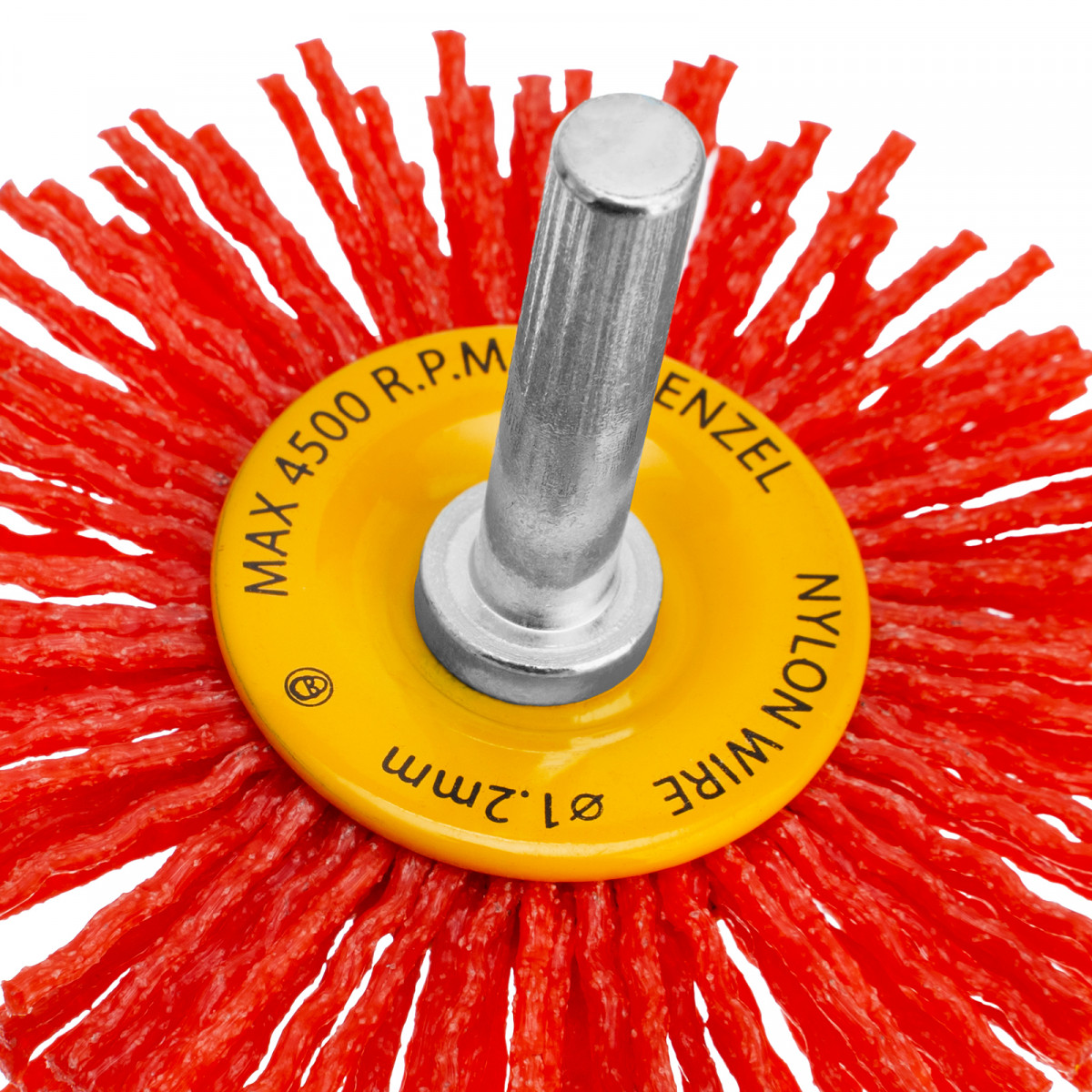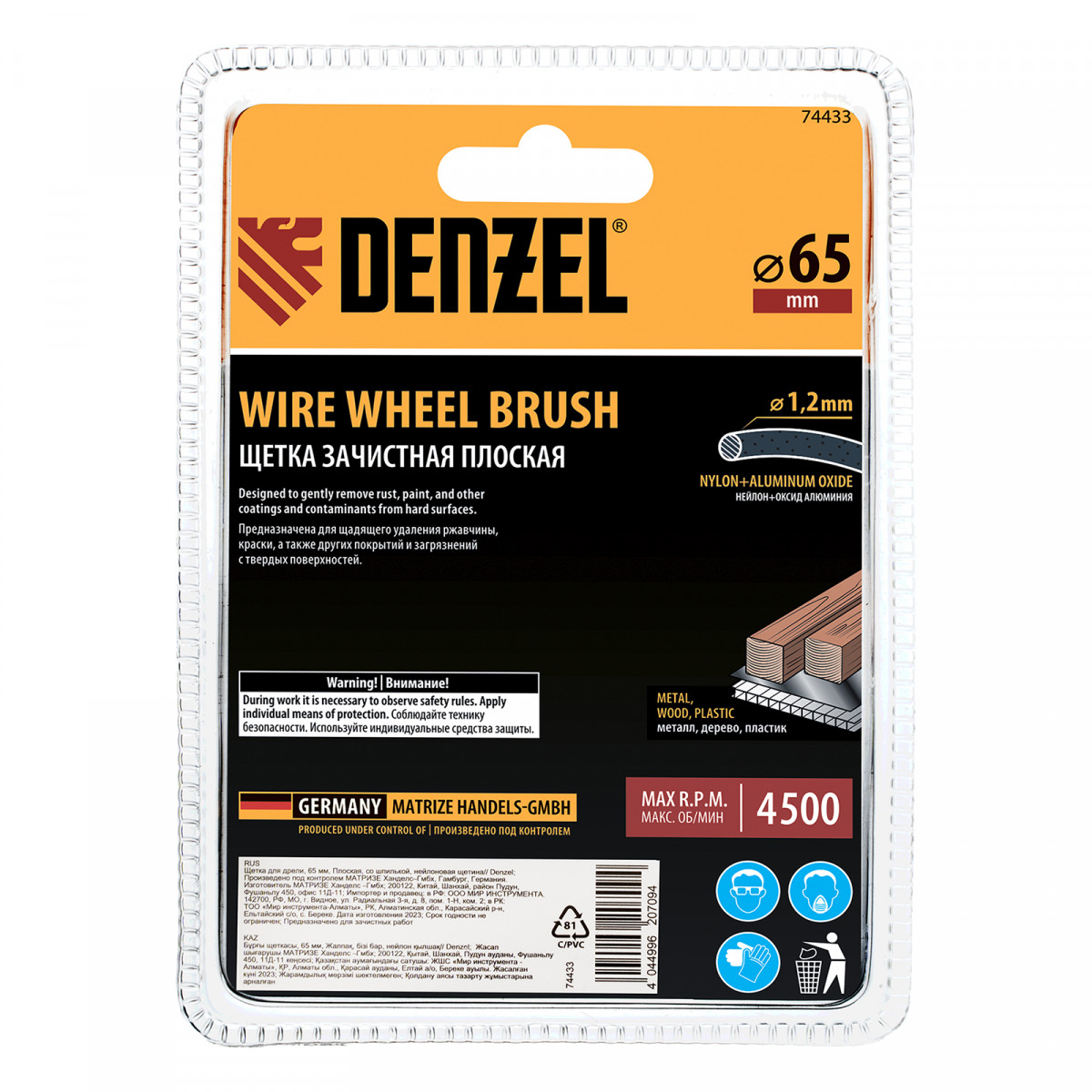 Щетка для дрели, 65 мм, Плоская, со шпилькой, нейлоновая щетина Denzel