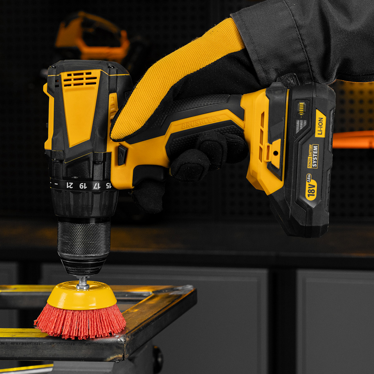 - Высокое качество обработки — в отличие от металлической, нейлоновая щетина не оставляет следов на деревянных поверхностях.