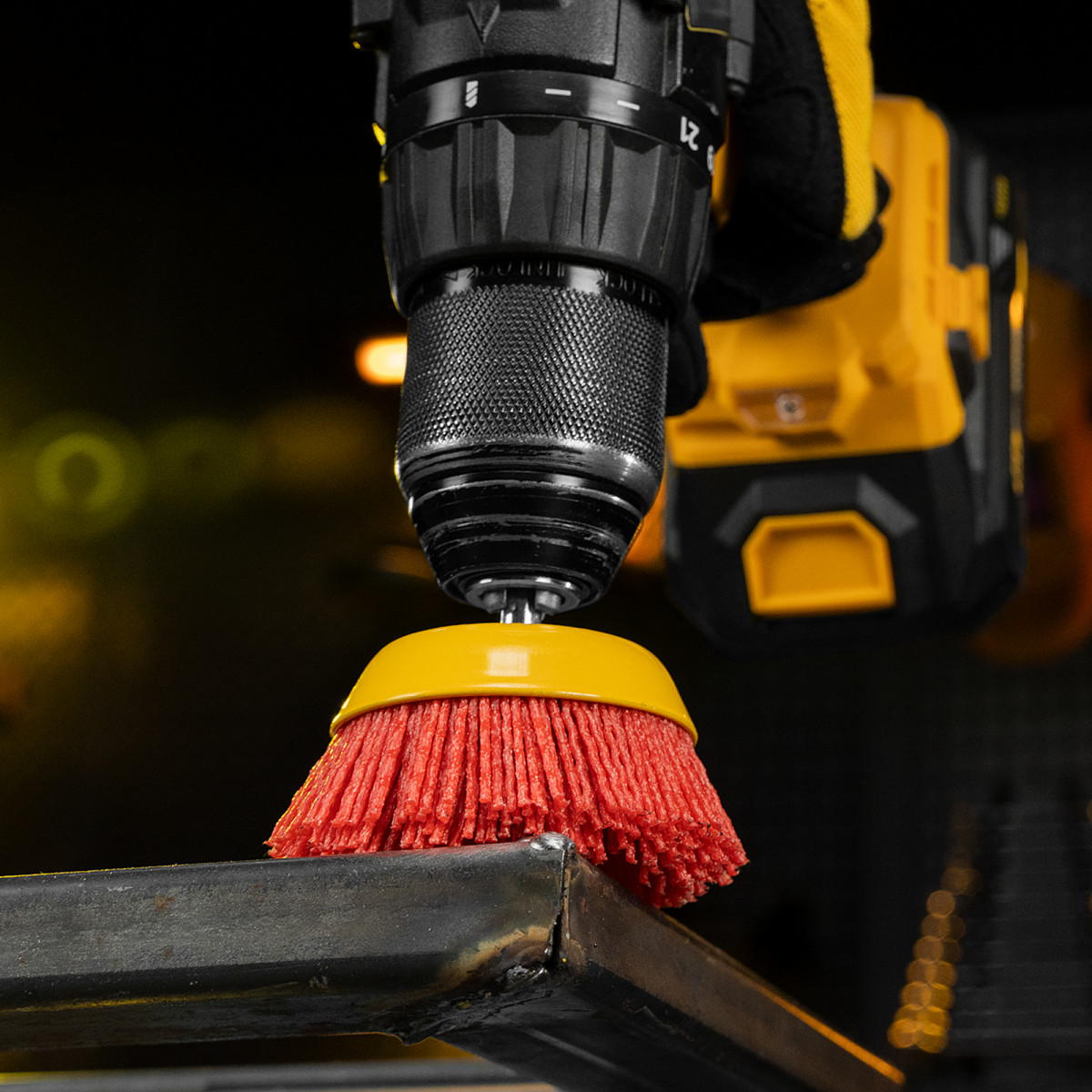 Щетка Denzel 74436 в форме чашки диаметром 75 мм, со шпилькой и нейлоновой щетиной, — насадка для дрели, предназначенная для выполнения шлифовальных работ по пластику, древесине, стали и цветным металлам. Щетина изготовлена из высококачественного нейлона с нанесенным абразивом из оксида алюминия. Щетка оптимальна для деликатного удаления загрязнений, краски, пятен ржавчины с твердых поверхностей. Позволяет придать шероховатость поверхности, подходит для браширования древесины. Насадка удобна для обработки плоских деталей большой площади.