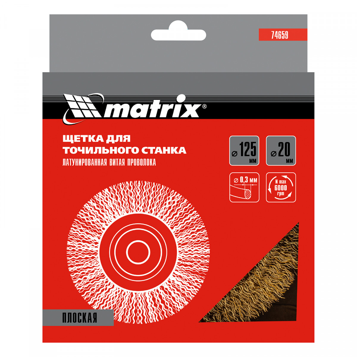 Плоская щетка Matrix 74659 диаметром 125 мм, с щетиной из латунированной витой проволоки, устанавливается на точило с посадочным размером 20 мм. Рекомендуемая скорость вращения — не более 6000 об/мин. Витая проволока позволяет в щадящем режиме зачистить тонкий слой ржавчины и лакокрасочных покрытий, удалить различные загрязнения с небольших или хрупких деталей. Благодаря плоской форме щетка подходит для обработки труднодоступных мест.