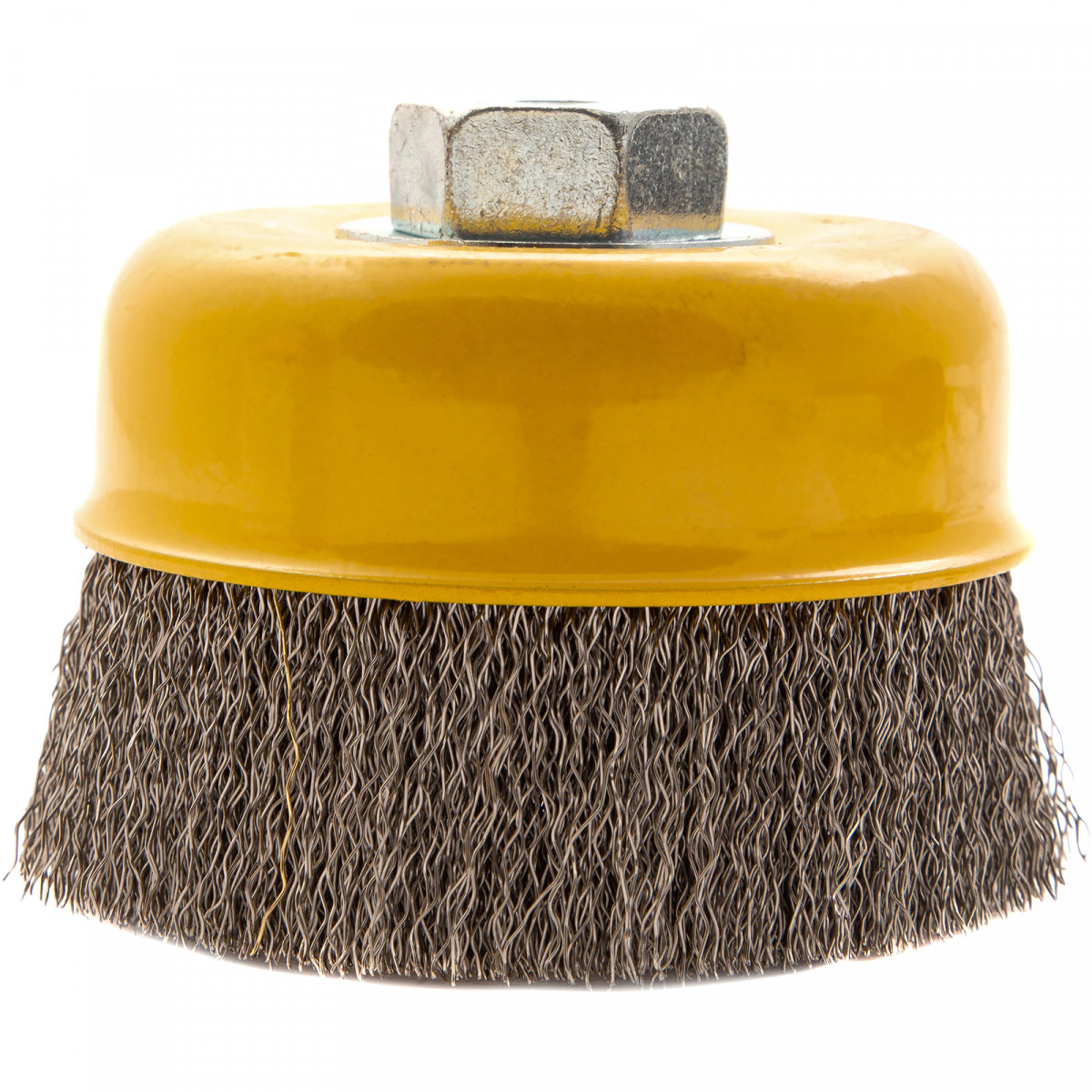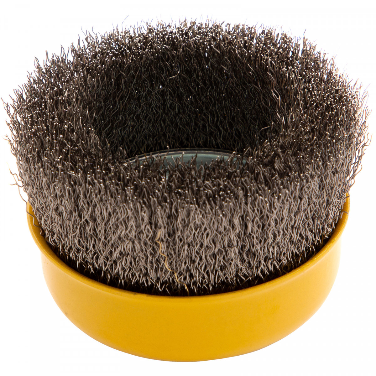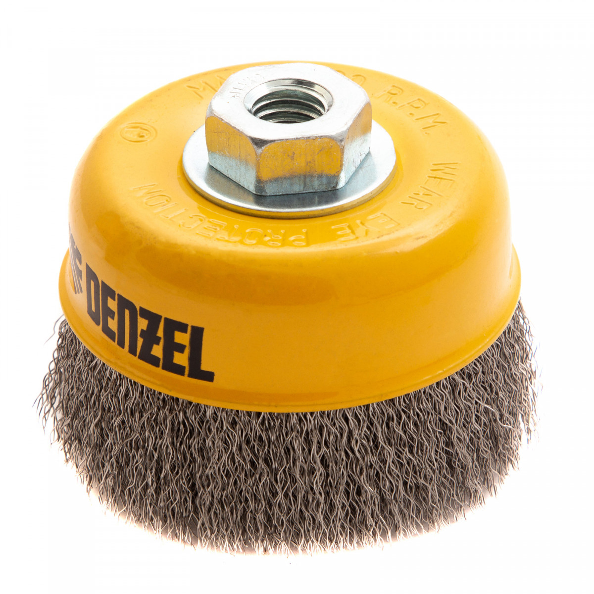 Щетка для УШМ «Чашка» Denzel 746053 с гайкой М14, диаметром 100 мм, с щетиной из витой нержавеющей проволоки диаметром 0,3 мм, позволяет быстро и аккуратно очистить металлическую, деревянную или пластиковую поверхность от незначительных загрязнений и ржавчины, а также удалить остатки лакокрасочных материалов, сделать поверхность шероховатой или матовой. Насадка предназначена для очистки плоских участков большой площади. Подходит для обработки нержавеющей стали.