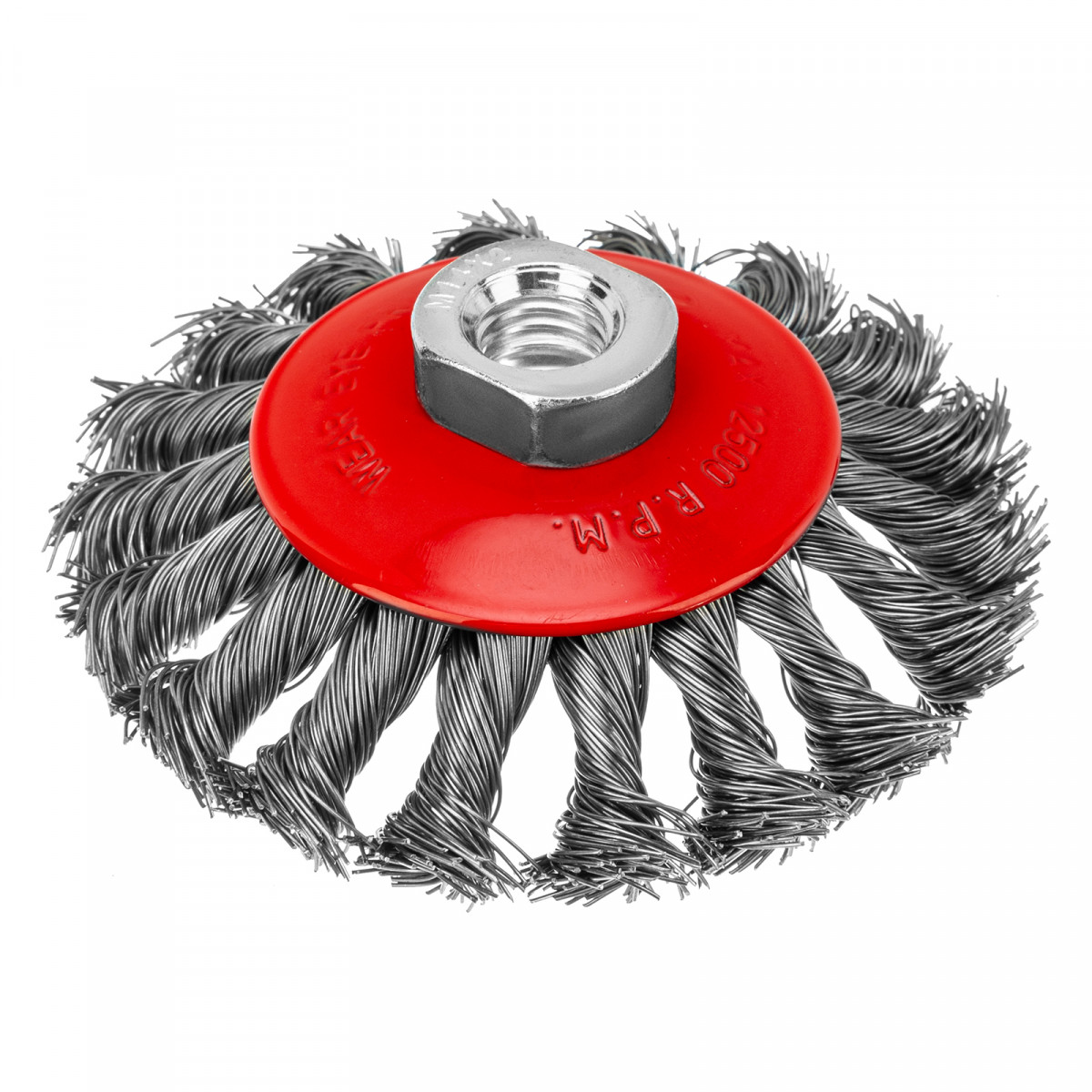 Щетка для УШМ, 100 мм, М14, "тарелка", крученая проволока 0.5 мм Matrix