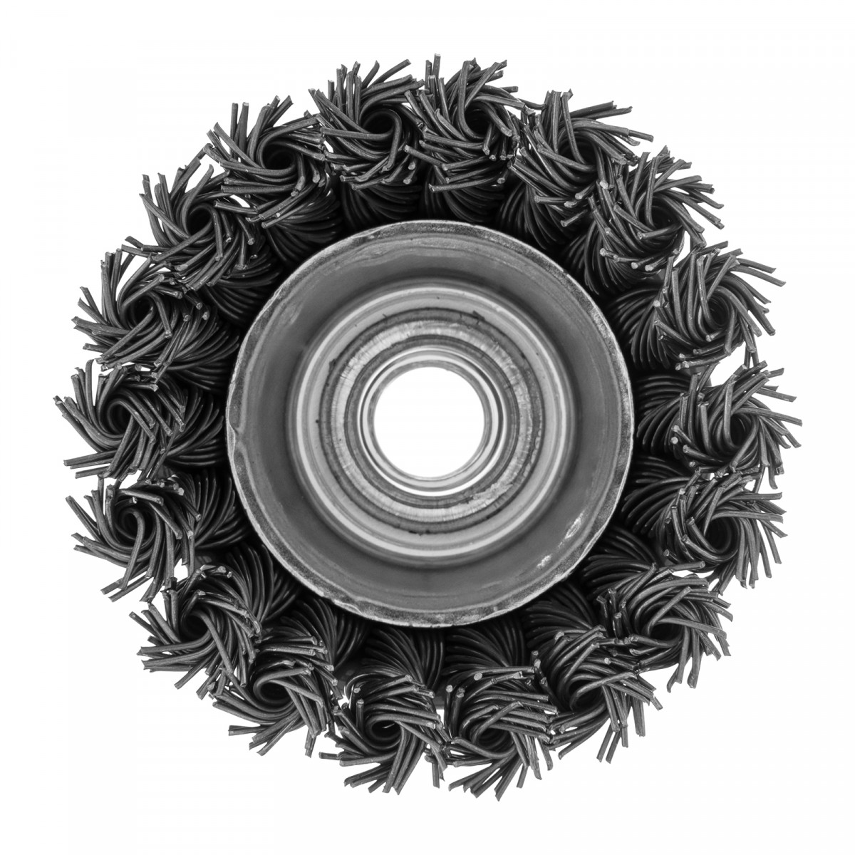 Щетка Matrix «Чашка» 74622 диаметром 75 мм, с присоединительной резьбой М14, с щетиной из крученой проволоки диаметром 0,8 мм, устанавливается на УШМ, поддерживающую работу со скоростью 12500 об/мин. Щетина предназначена для грубой (черновой) обработки поверхностей, более агрессивной по сравнению с щетиной 0,5 мм. Изделие подходит для удаления загрязнений, снятия толстого слоя ржавчины, ЛКМ, зачистки сварных швов.