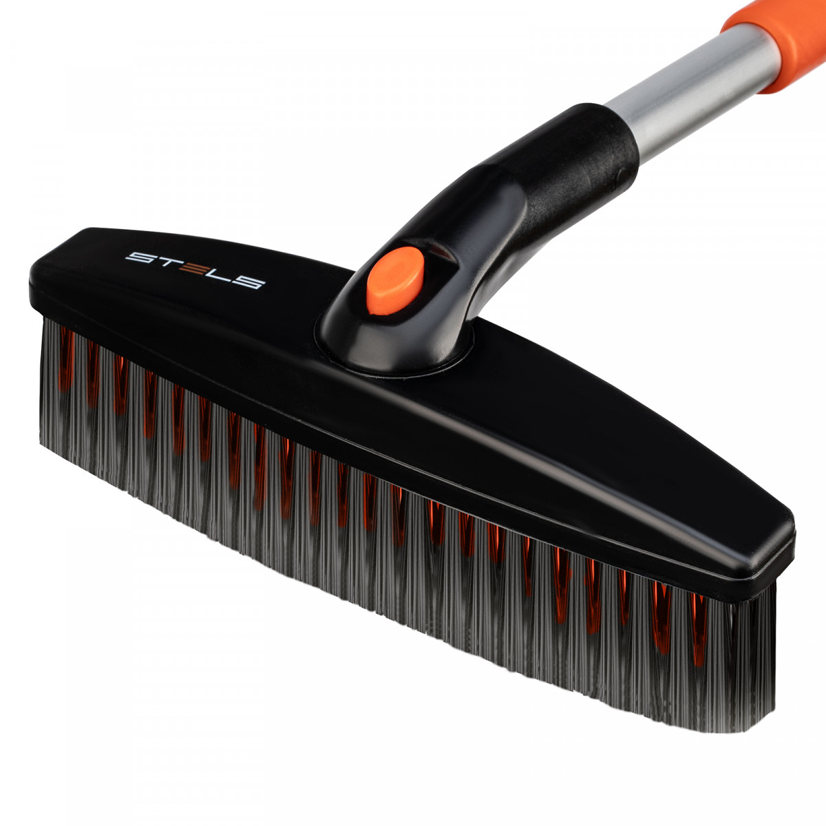 Телескопическая щетка-сметка для снега со скребком Stels 55313, длину которой можно увеличить с 730 до 1000 мм, помогает быстро очистить автомобиль от снега и наледи. Раздвижная рукоятка облегчает чистку капота и крыши. Щетка будет полезна автолюбителям.