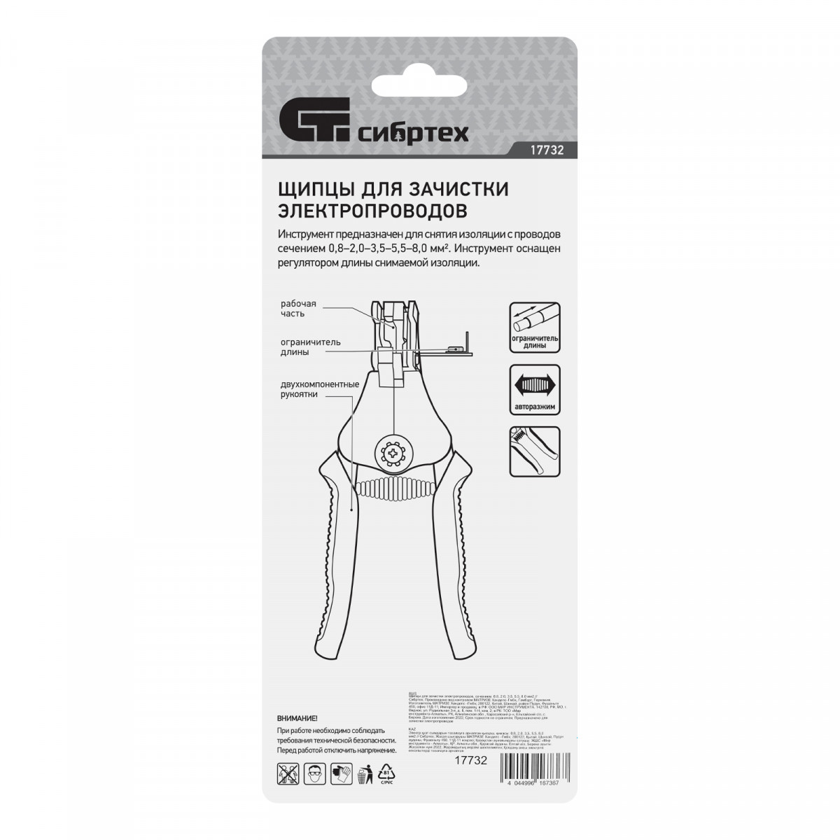 Щипцы для зачистки электропроводов сечением: 0.8, 2.0, 3.5, 5.5, 8.0 мм2 Сибртех