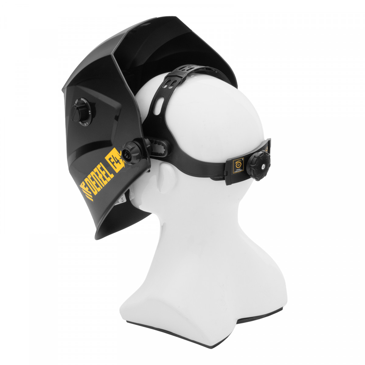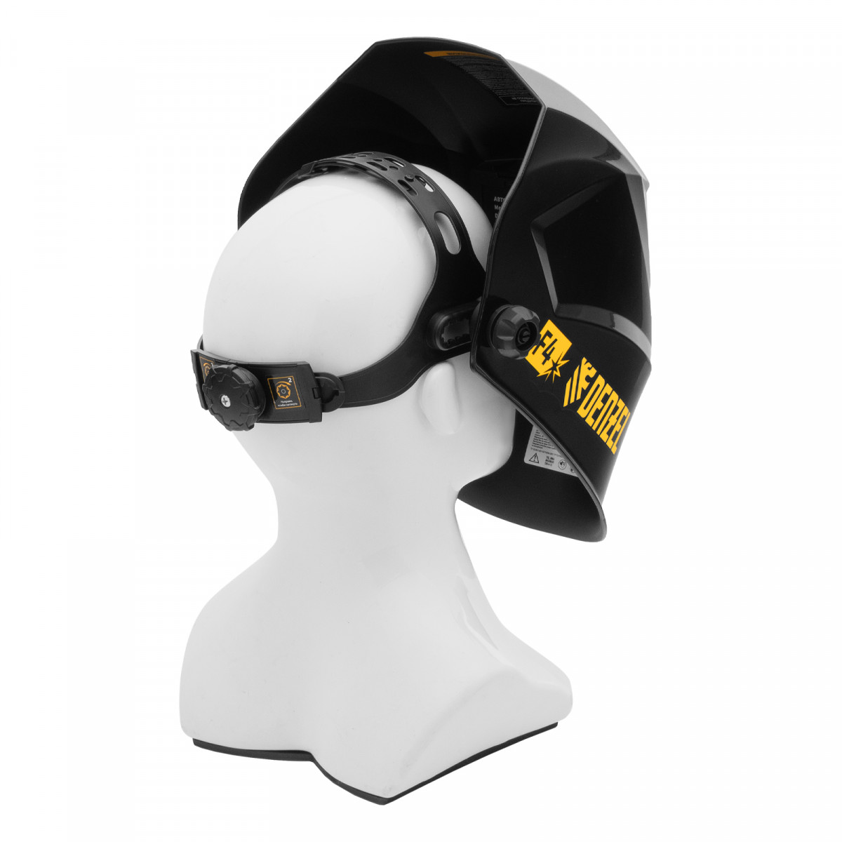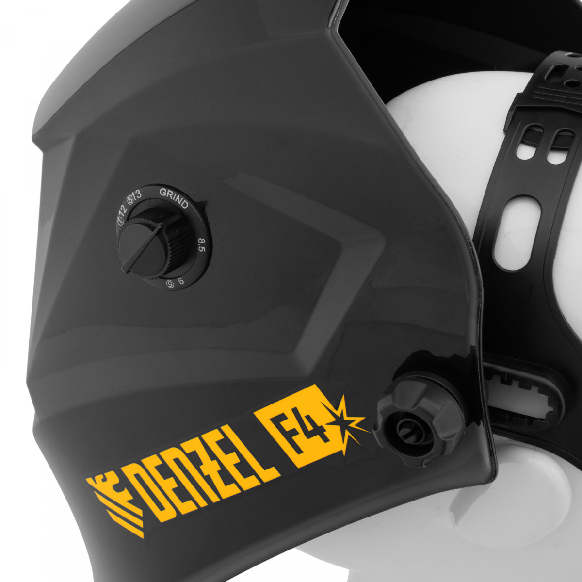 Защитный лицевой щиток (маска сварщика) Denzel F4 89715 со смотровым окном размером 90 x 35 мм и функцией затемнения DIN 4/9-13 используется во время проведения сварочных работ. Надежно защищает глаза и лицо пользователя от искр, брызг расплавленного металла, а также от инфракрасного и ультрафиолетового излучения. Корректную работу светофильтра обеспечивают два фотодатчика. Щиток подходит для проведения сварочных работ в режимах MMA, MIG/MAG, TIG, а также для выполнения плазменно-дуговой сварки, плазменной и дуговой резки.