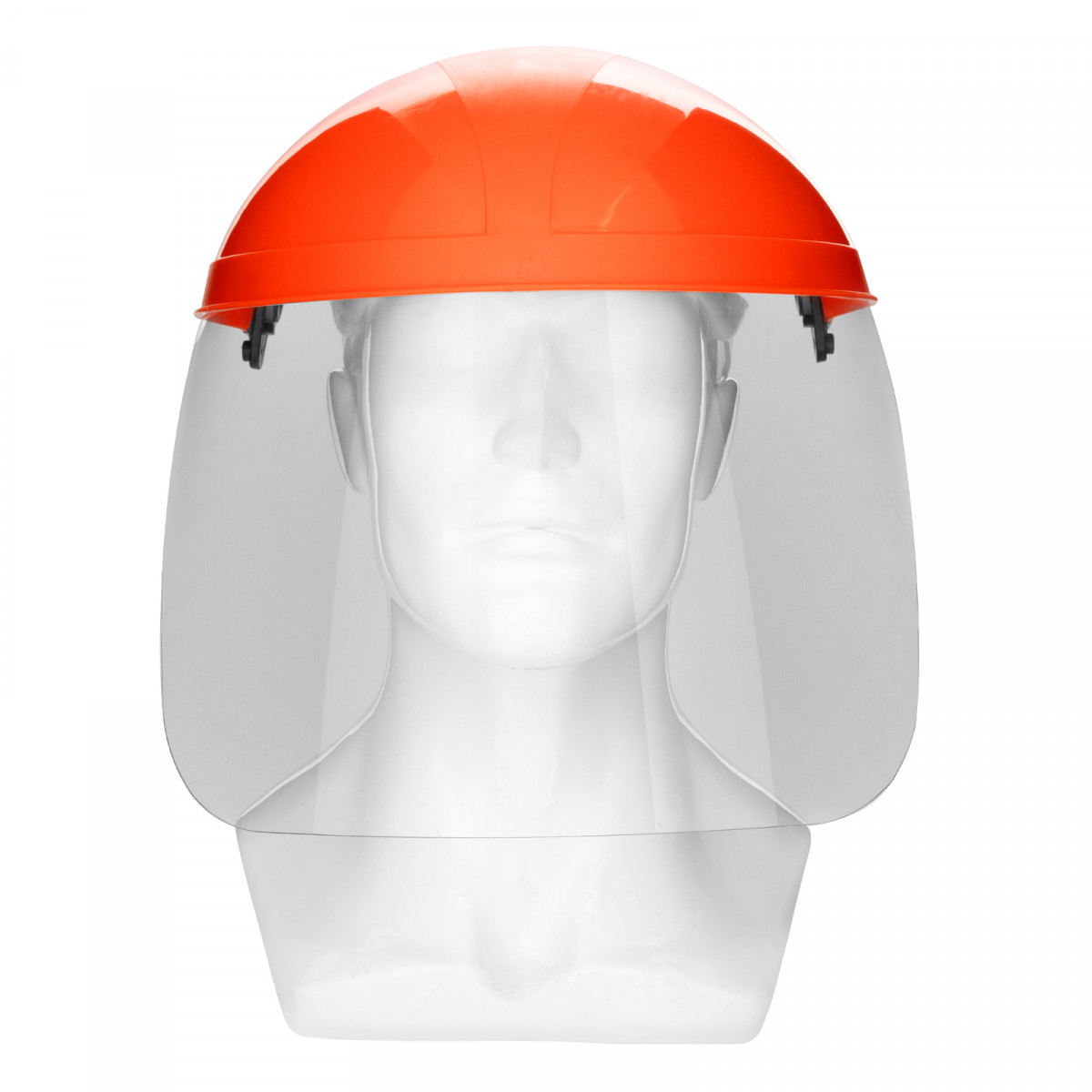 - Козырек из противоударного термостойкого пластика защищает голову сверху.