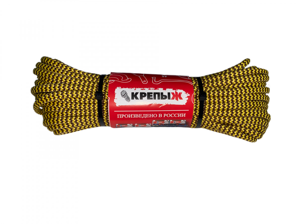 Шнур полипропиленовый плетеный 10 мм 8 пр. 20 м с сердечником КРЕПЫЖ