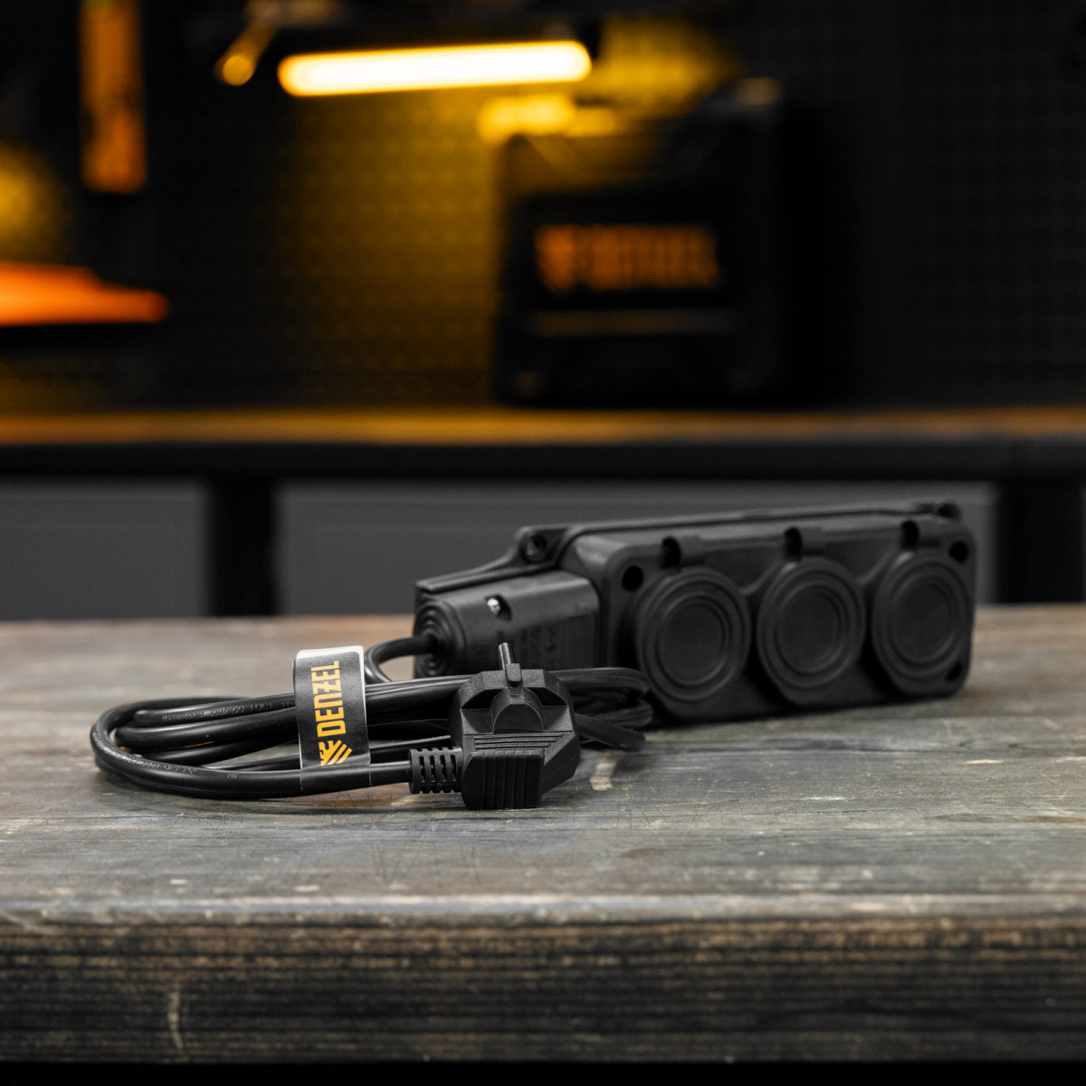 Шнур сетевой Energy Series, ПВС, 3 м, 3 x 1,5 мм, с неразборной вилкой, черный, Denzel