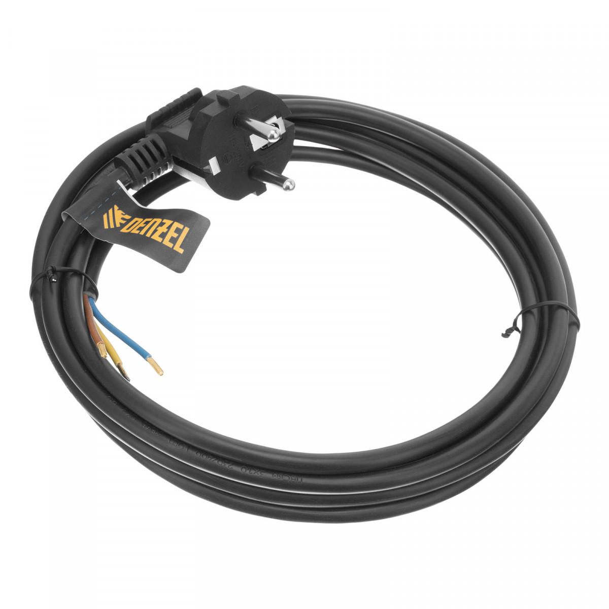 Черный сетевой шнур Denzel Energy Series 37667 с кабелем ПВС сечением 3 x 1 мм и длиной 3 м, с неразборной вилкой, предназначен для подключения к сети электроприборов мощностью до 3500 Вт. Для смотанного кабеля максимальная мощность потребителя составляет 1750 Вт. Шнур можно использовать для самостоятельного подключения прибора или замены вышедшего из строя провода. Сделано в России.
