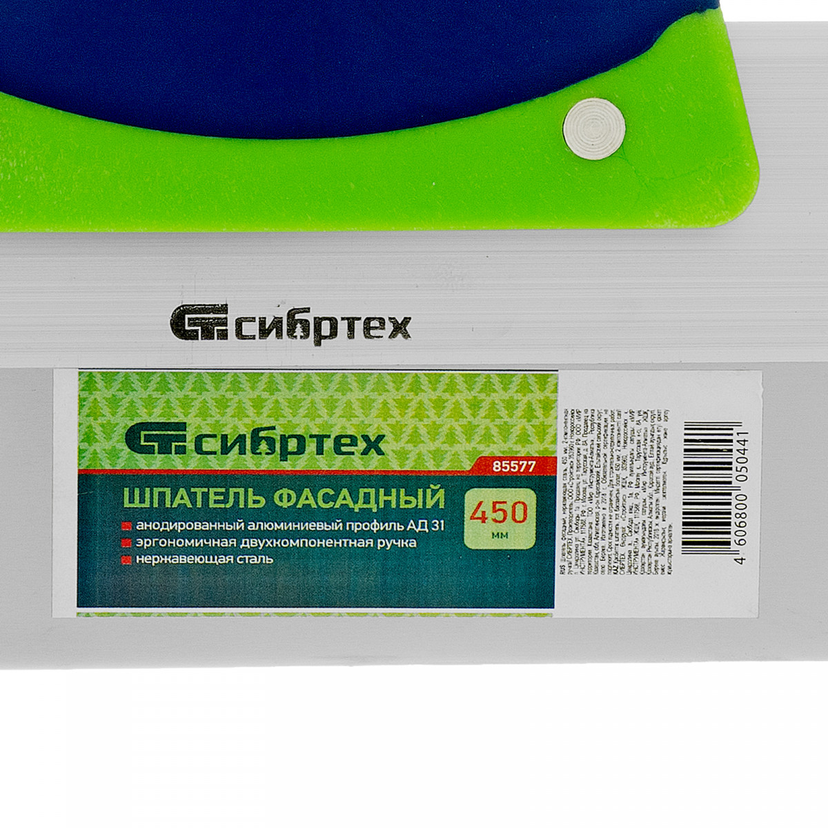 Фасадный шпатель Сибртех 85577 с рабочим полотном из нержавеющей стали шириной 450 мм и двухкомпонентной рукояткой, предназначен для нанесения, выравнивания и разглаживания отделочных составов, а также проведения других ремонтно-отделочных работ. Оптимален для заглаживания зашпаклеванных швов.