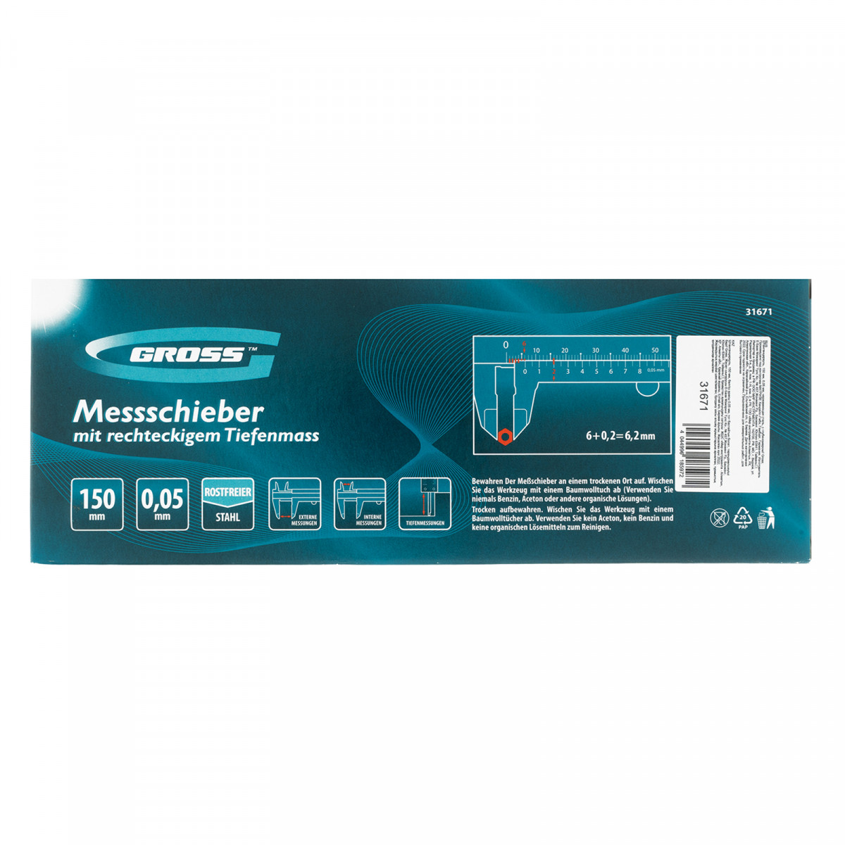 Штангенциркуль, 150 мм, 0.05 мм, нержавеющая сталь, с глубиномером Gross