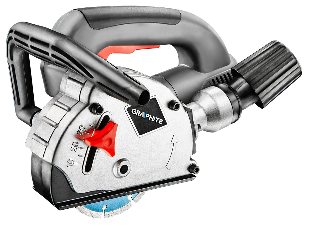 Профессиональный штроборез GRAPHITE (арт. 59G370) мощностью 1320 Вт, предназначен для выполнения борозд в стенах под проводку. Инструмент отличается эргономичной формой, имеет антискользящую накладку на основной рукоятке и профилированную дополнительную рукоятку. Возможна регулировка глубины резки в диапазоне от 8 до 30 мм и ширины от 8 до 26 мм. Максимальная частота вращения инструмента составляет 9000 оборотов в минуту. Инструмент оснащен термозащитой и блокиратором от случайного включения. Кроме того, электроинструмент оснащен блокиратором шпинделя, позволяющим заменять рабочие диски. Штроборез оснащен системой отвода пыли, облегчающей работу, прежде всего, вне помещений. В набор вместе со штроборезом входят: монтажные ключи, переходник, дистанционные шайбы и зубило. Соответствие европейским стандартам обеспечивает сертификат СЕ.
