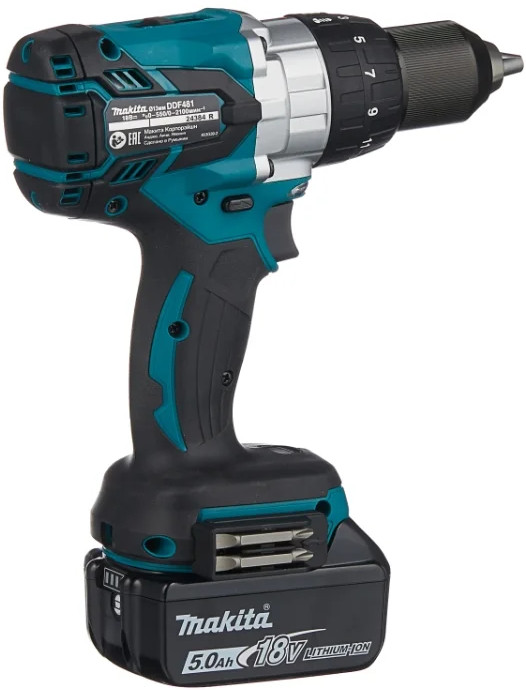 Аккумуляторная дрель-шуруповерт Makita DDF481RTE снабжена бесщеточным двигателем, что увеличивает её рабочий ресурс. Благодаря быстрозажимному патрону замена оснастки происходит легко и быстро. С помощью муфты регулировки крутящего момента можно выставить необходимое значение момента затяжки под работу с конкретным материалом. Функция реверса упрощает извлечение заклинившего сверла и выворачивание крепежа. Модель поставляется в кейсе, что решает вопрос хранения и транспортировки.
