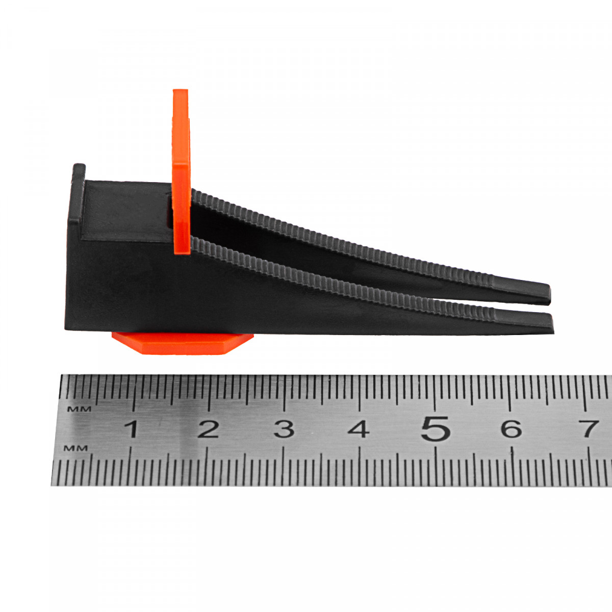 - Надежная фиксация — благодаря ребристой поверхности клинья надежно фиксируются с зажимами для плитки.
