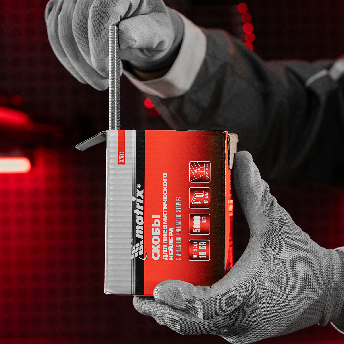 Скобы для пневматического степлера 18GA, 1.25 х 1 мм длина 19 мм, ширина 5,7 мм, 5000 шт Matrix