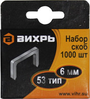 Скобы ВИХРЬ для мебельного степлера (6мм, тип 53)