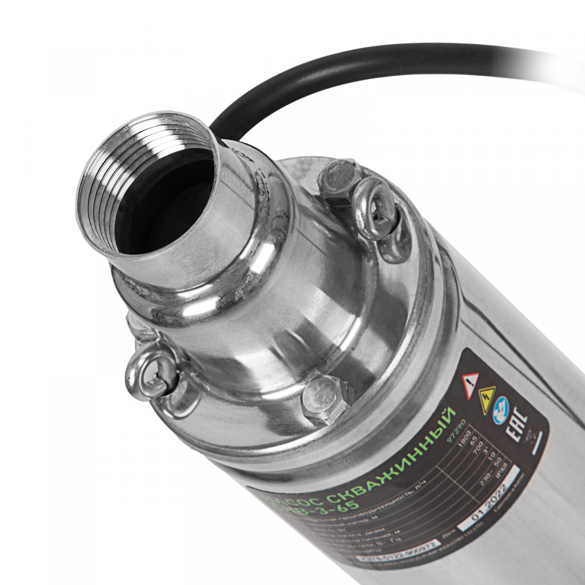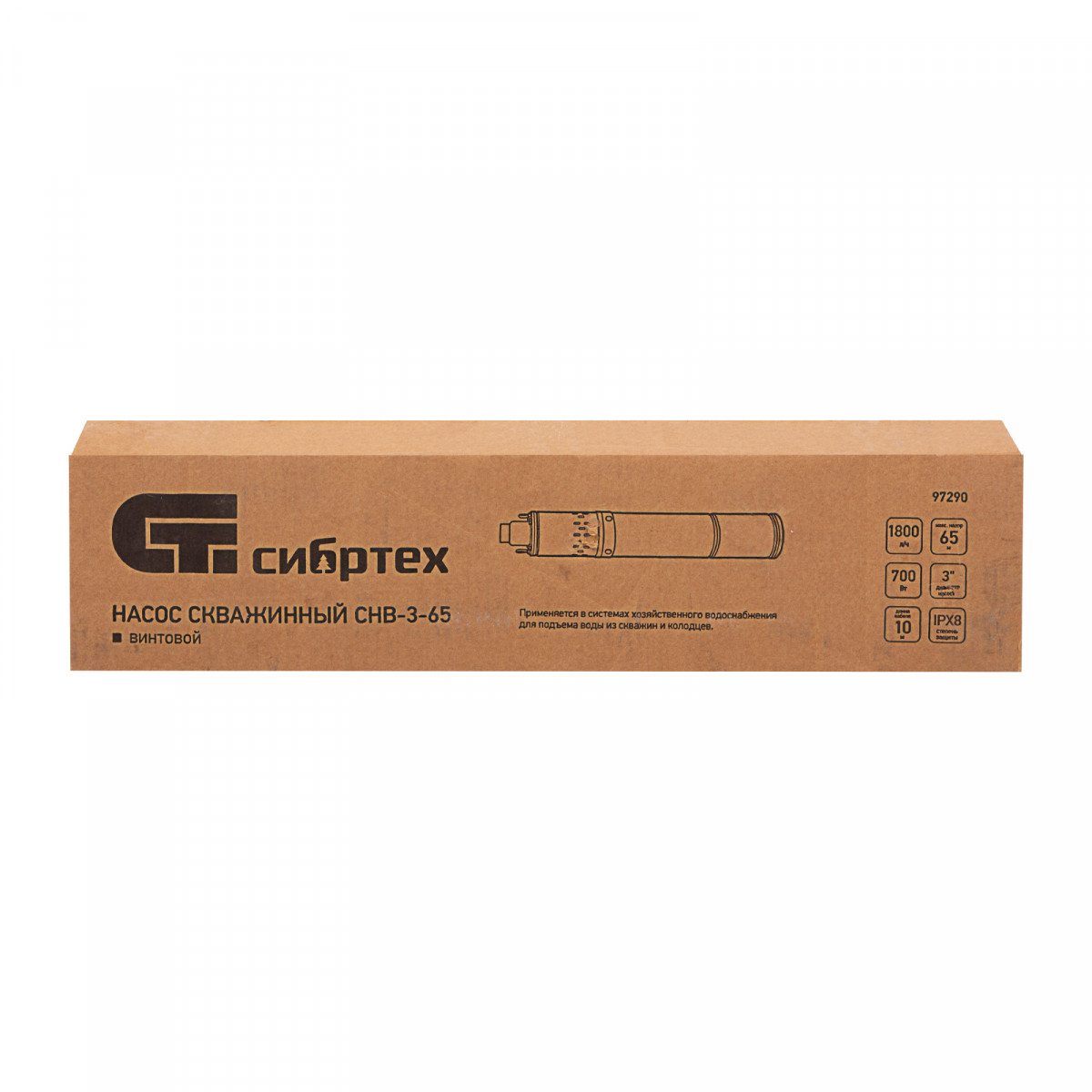 Скважинный винтовой насос Сибртех СНВ-3-65 97290 мощностью 700 Вт, диаметром 3", обеспечивает напор до 65 м и способен перекачивать 1800 литров жидкости в час. Предназначен для подъема чистой воды из скважин и колодцев глубиной до 80 м. Насос позволяет организовать систему водоснабжения и полива на даче, садовом участке или в загородном доме.