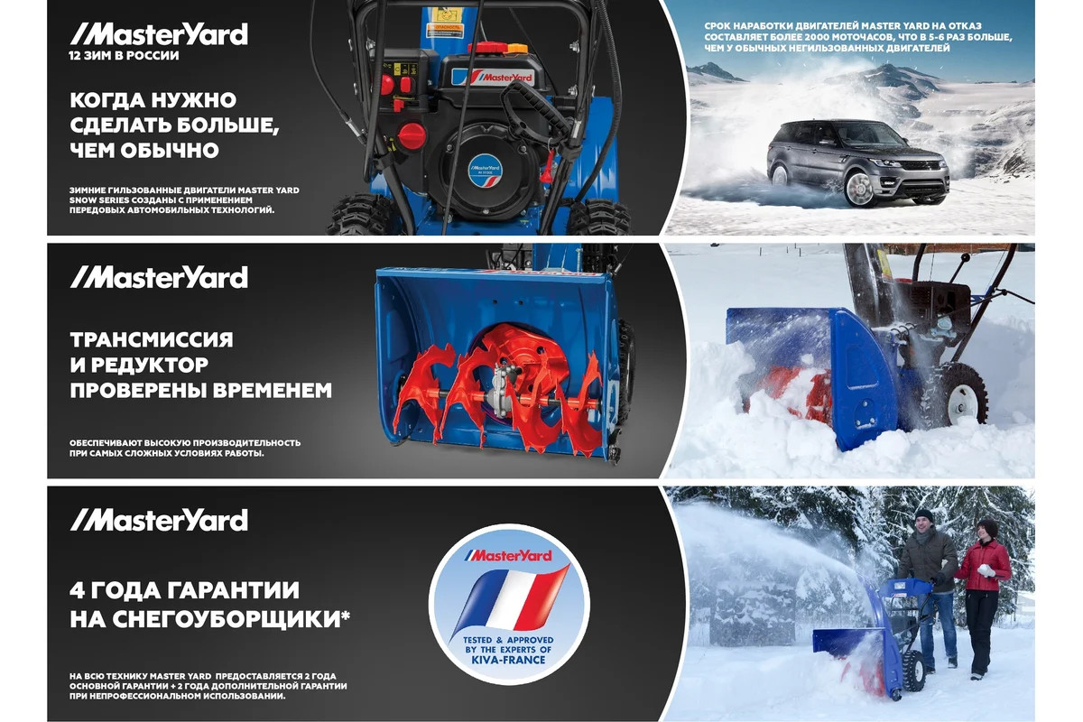 Высокое качество и доступные цены делают популярной на российском рынке технику под торговой маркой MASTER YARD, производство которой осуществляется на самом современном оборудовании, с использованием высоких технологий, с постоянным совершенствованием модельного ряда. Продукция сертифицирована в соответствии со строгими стандартами GS, EPA и UL по качеству, безопасности и экологичности.