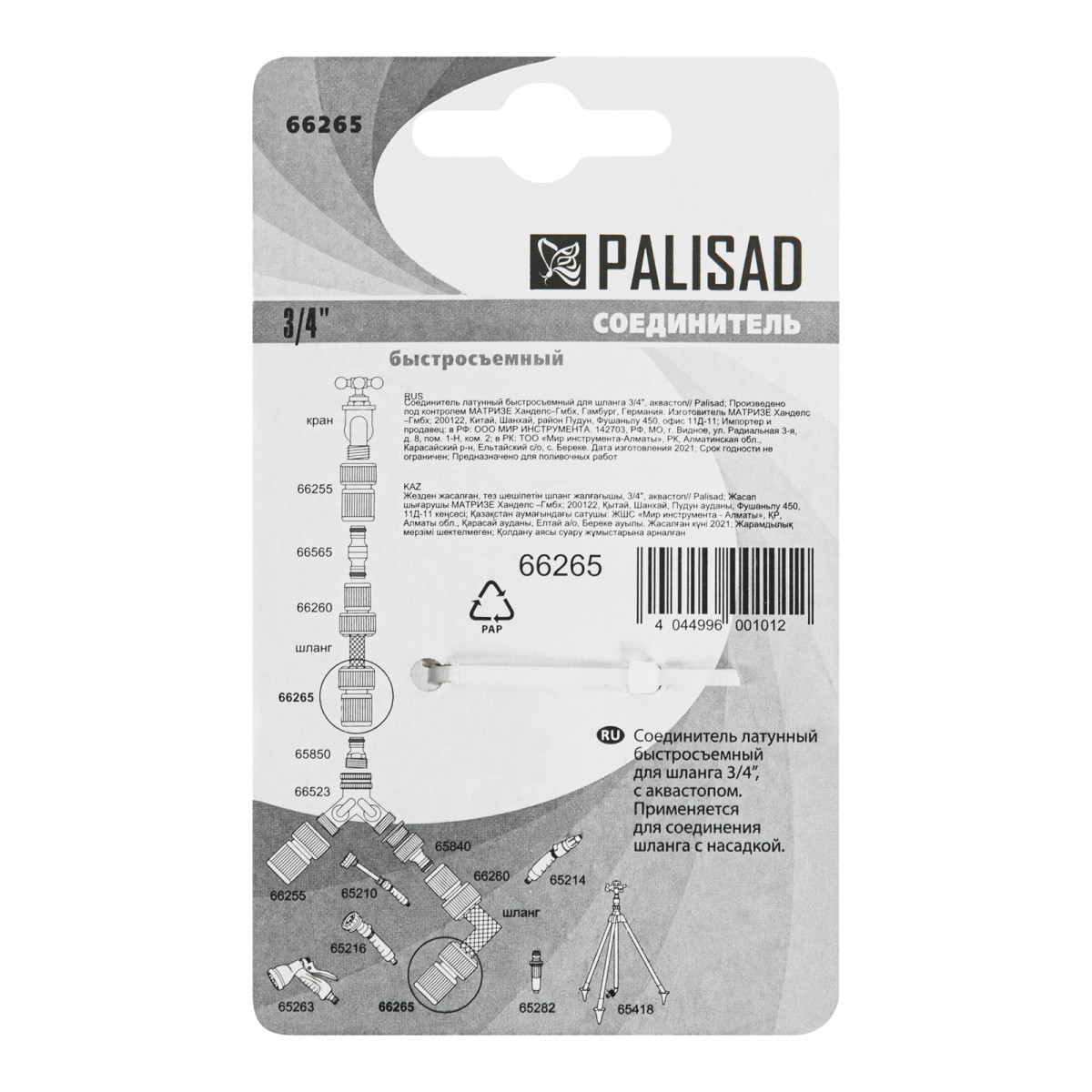 Соединитель латунный, быстросъемный для шланга 3/4, аквастоп Palisad