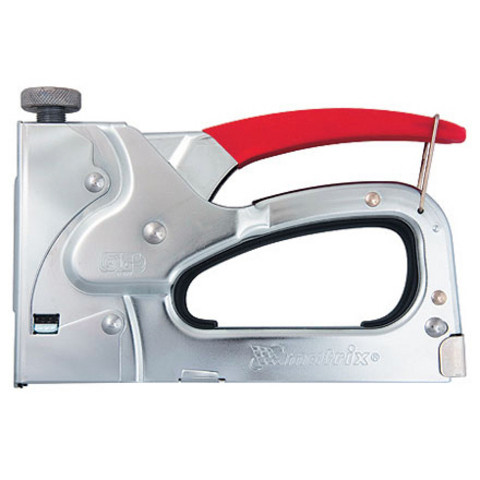 Рассчитанный на применение при проведении работ по сборке и ремонту мебели степлер Matrix 40901 позволяет без особых усилий крепится ткань, кожу или картон к основе из цельного дерева, ДВП/ДСП, гипсокартона. Механический инструмент может быть полезен и в бытовых условиях при выполнении монтажных, отделочных работ, ремонте корпусной мебели.