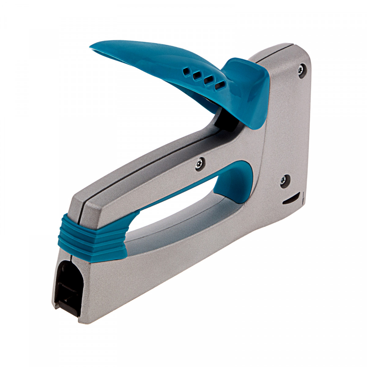 - Безопасность — рукоятка надежно фиксируется в горизонтальном положении, что предотвращает самопроизвольное срабатывание степлера.