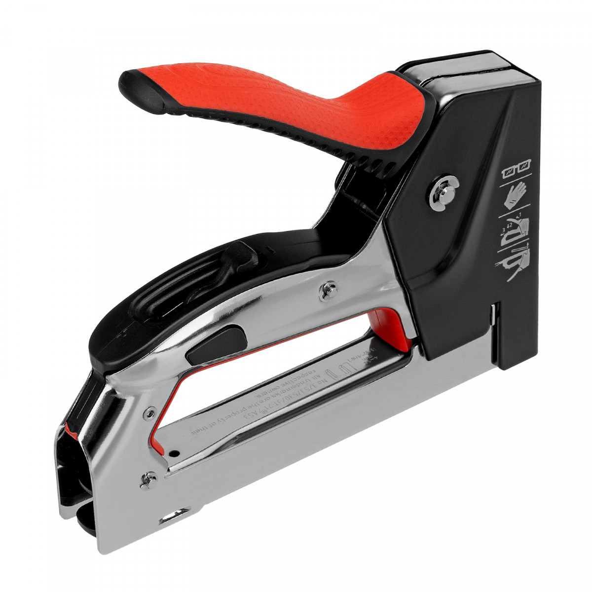 - Продуманная комплектация — степлер поставляется с крючком для подвешивания на ремень.