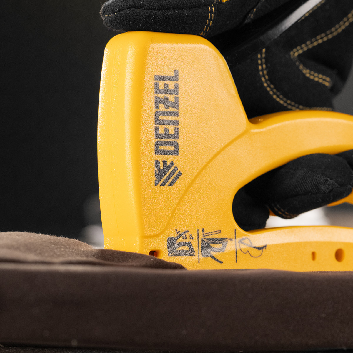 Пластиковый степлер Denzel 40221 работает со скобами типа 53 размером 6-10 мм и предназначен для быстрого крепления листовых материалов к основаниям из древесины, ДВП или ДСП. Используется для сборки и обивки мебели, фиксации изоляционных материалов. Ударный механизм рессорного типа не требует повышенных усилий от пользователя, поэтому продолжительная работа с инструментом не вызывает дискомфорт.