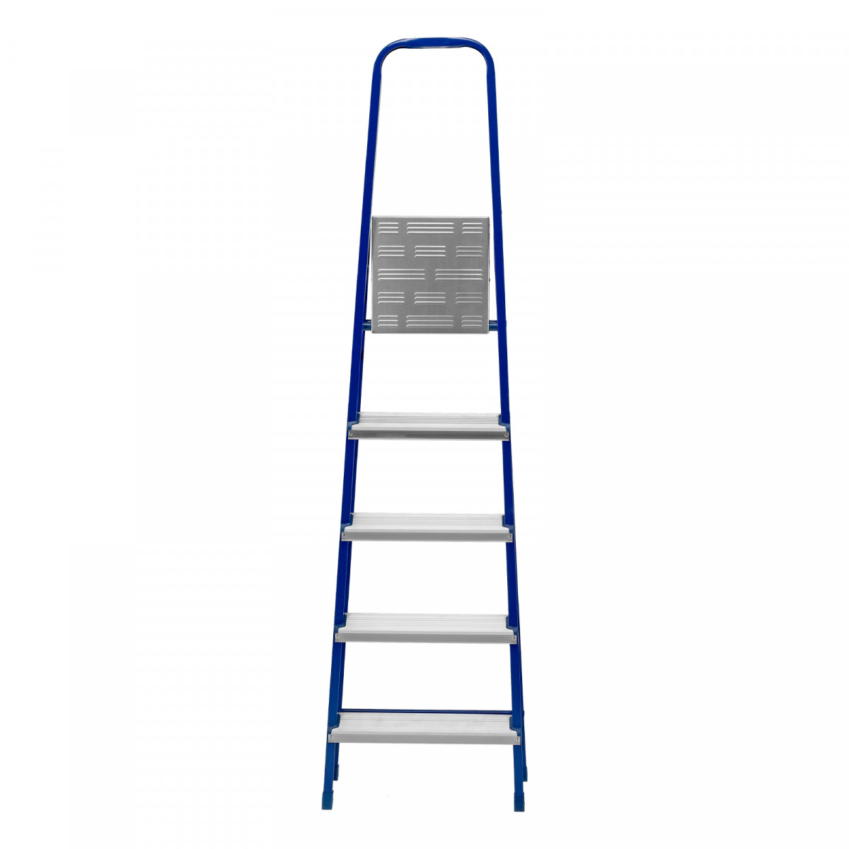 Стремянка Сибртех 97955 со стальным профилем и 5 ступенями, 4 из которых алюминиевые, упрощает доступ к предметам, расположенным на антресолях, шкафах, высоких полках. Также будет полезна для проведения отделочных и монтажных работ. Лестница обладает высокой прочностью при весе 6 кг и выдерживает нагрузку до 150 кг. Площадка находится на высоте 101,2 см от опорной поверхности, рабочая высота стремянки составляет 301,2 см (при среднем росте пользователя 170 см).