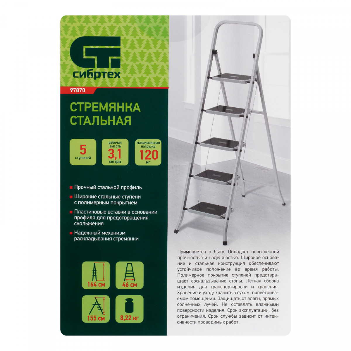 Стремянка 5 ступени, с полимерными ковриками, Сибртех
