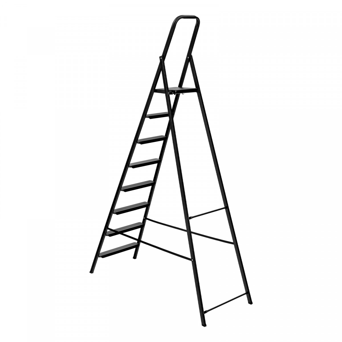 Стремянка компактная стальная Сибртех 97948 с 8 ступенями служит для проведения работ на высоте, превышающей человеческий рост. Стальные профилированные рама и ступени рассчитаны на нагрузку до 150 кг. Площадка находится на высоте 179 см от опорной поверхности, рабочая высота стремянки составляет 379 см (при среднем росте пользователя 170 см). Использовать стремянку можно дома, на даче или в гараже, а также во время строительства и ремонта.