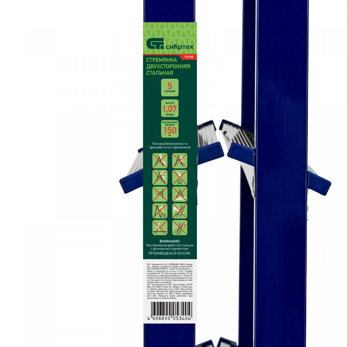 Стремянка двусторонняя 5 ступеней, стальная, Сибртех