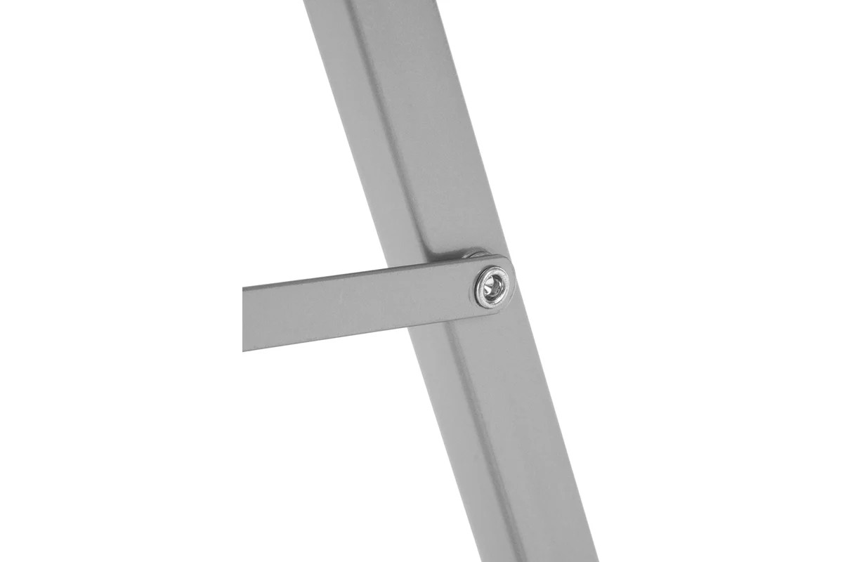 - Прочная конструкция — стремянка изготовлена из стального профиля и снабжена надежным механизмом раскладывания, поэтому выдерживает нагрузку до 150 кг
